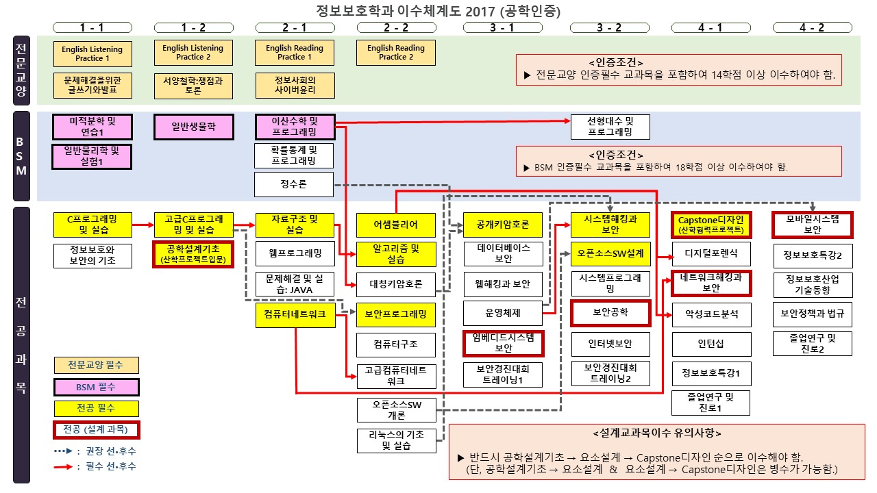 | 전문교양 | 14학점 | 정보보호학과 졸업기준과 동일함(수강편람 참조) |