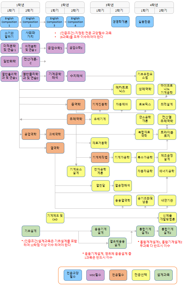 108 | 기계공학과 졸업 이수 요구 학점 : 130학점 이상 |