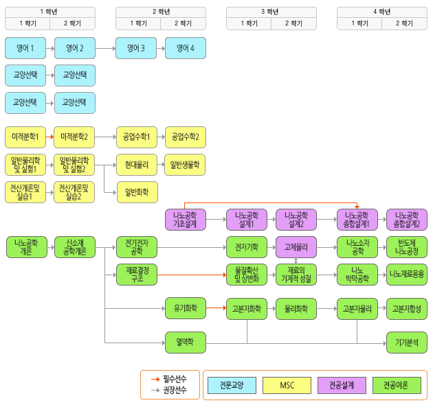 | 전공 | 60 | * 지정설계과목 -나노공학기초설계, 나노공학설계 1,2,나노공학종합설계 1,2 |